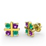 Kök zümrüt ve ametist 8 ayar altın küpe