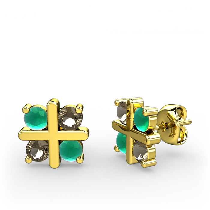 Kök zümrüt ve dumanlı kuvars 925 ayar altın kaplama gümüş küpe