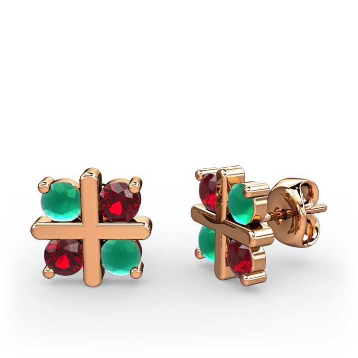 Kök zümrüt ve garnet 14 ayar rose altın küpe