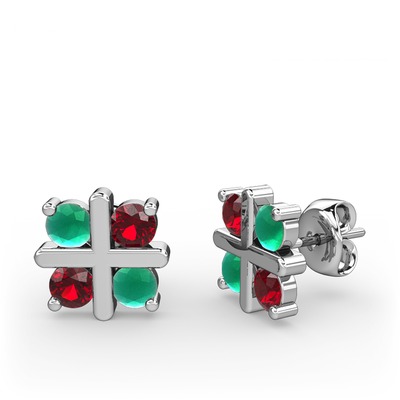 Kök zümrüt ve garnet 18 ayar beyaz altın küpe