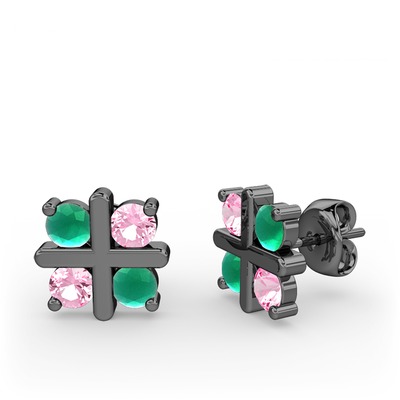 Kök zümrüt ve pembe kuvars 925 ayar siyah rodyum kaplama gümüş küpe