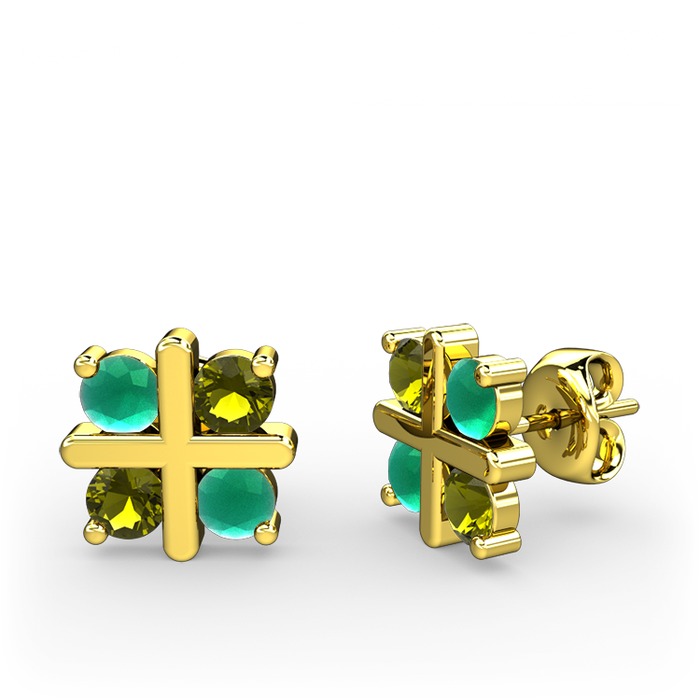 Kök zümrüt ve peridot 14 ayar altın küpe