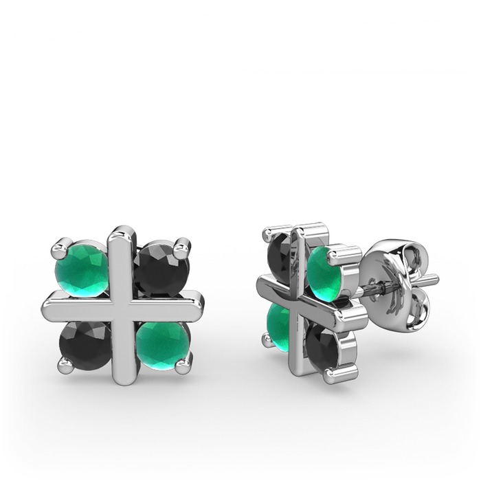 Kök zümrüt ve siyah zirkon 14 ayar beyaz altın küpe