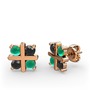 Kök zümrüt ve siyah zirkon 8 ayar rose altın küpe