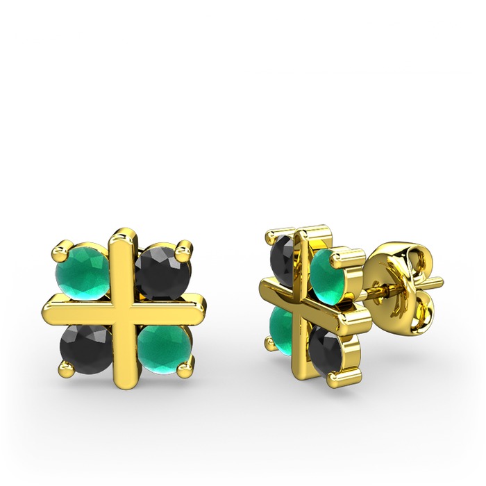 Kök zümrüt ve siyah zirkon 925 ayar altın kaplama gümüş küpe