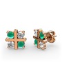Kök zümrüt ve swarovski 8 ayar rose altın küpe