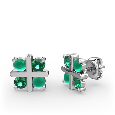 Kök zümrüt ve yeşil kuvars 925 ayar gümüş küpe