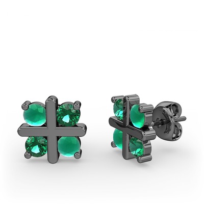 Kök zümrüt ve yeşil kuvars 925 ayar siyah rodyum kaplama gümüş küpe