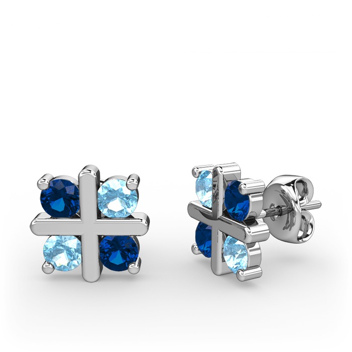 Lab safir ve akuamarin 14 ayar beyaz altın küpe