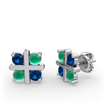Lab safir ve kök zümrüt 14 ayar beyaz altın küpe