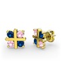 Lab safir ve pembe kuvars 18 ayar altın küpe