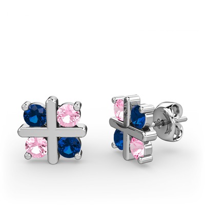 Lab safir ve pembe kuvars 8 ayar beyaz altın küpe