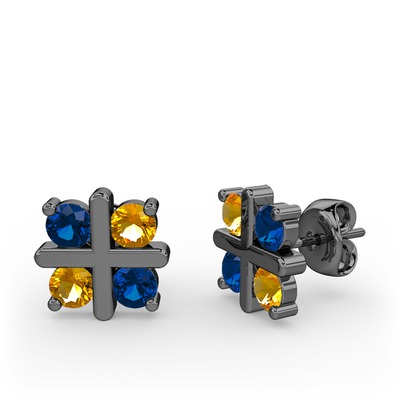 Lab safir ve sitrin 925 ayar siyah rodyum kaplama gümüş küpe