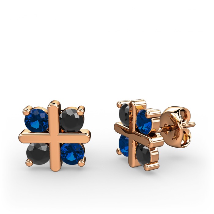 Lab safir ve siyah zirkon 18 ayar rose altın küpe