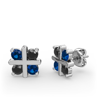 Lab safir ve siyah zirkon 8 ayar beyaz altın küpe