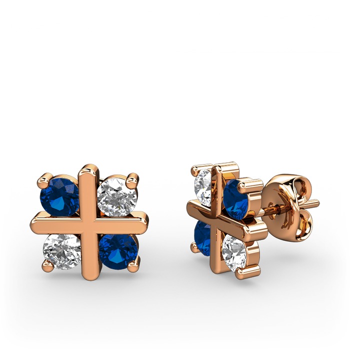Lab safir ve swarovski 14 ayar rose altın küpe