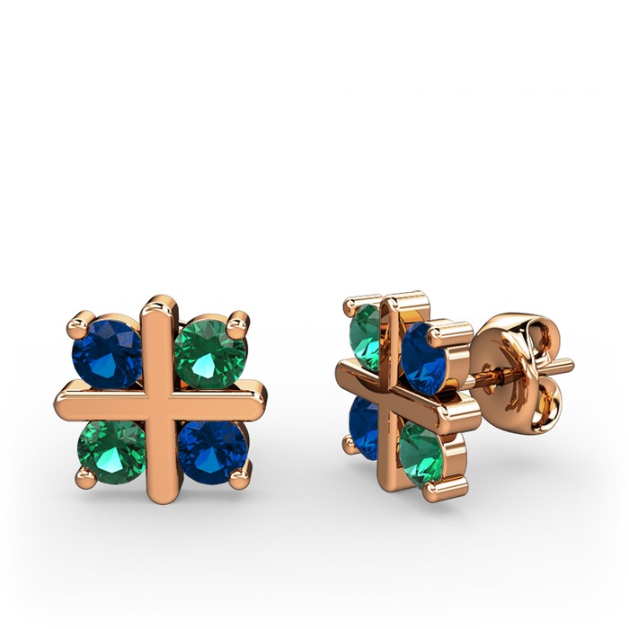 Lab safir ve yeşil kuvars 18 ayar rose altın küpe