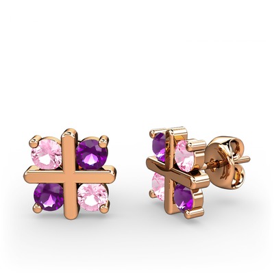 Pembe kuvars ve ametist 8 ayar rose altın küpe