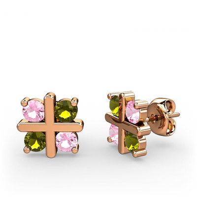 Pembe kuvars ve peridot 925 ayar rose altın kaplama gümüş küpe