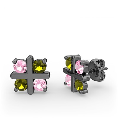 Pembe kuvars ve peridot 925 ayar siyah rodyum kaplama gümüş küpe