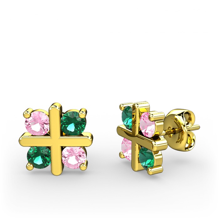 Pembe kuvars ve yeşil kuvars 925 ayar altın kaplama gümüş küpe