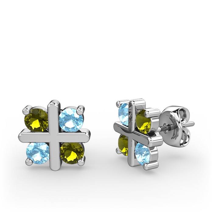 Peridot ve akuamarin 8 ayar beyaz altın küpe