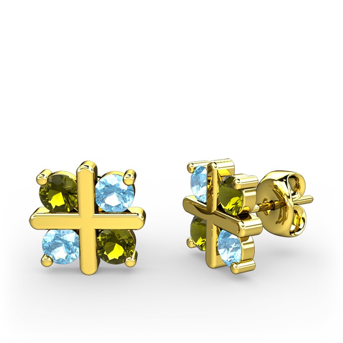 Peridot ve akuamarin 925 ayar altın kaplama gümüş küpe