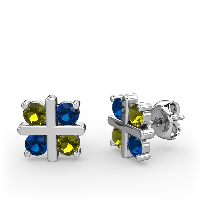 Peridot ve lab safir 14 ayar beyaz altın küpe