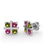Peridot ve rodolit garnet 14 ayar beyaz altın küpe