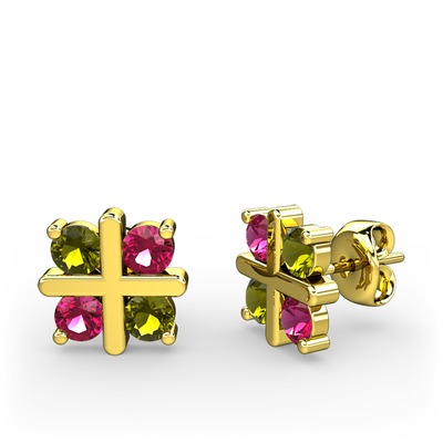 Peridot ve rodolit garnet 18 ayar altın küpe