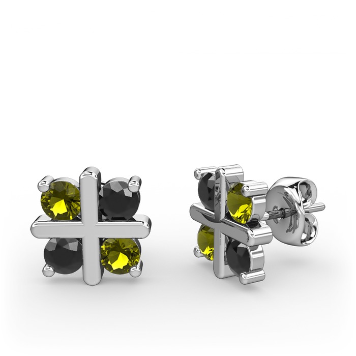 Peridot ve siyah zirkon 18 ayar beyaz altın küpe