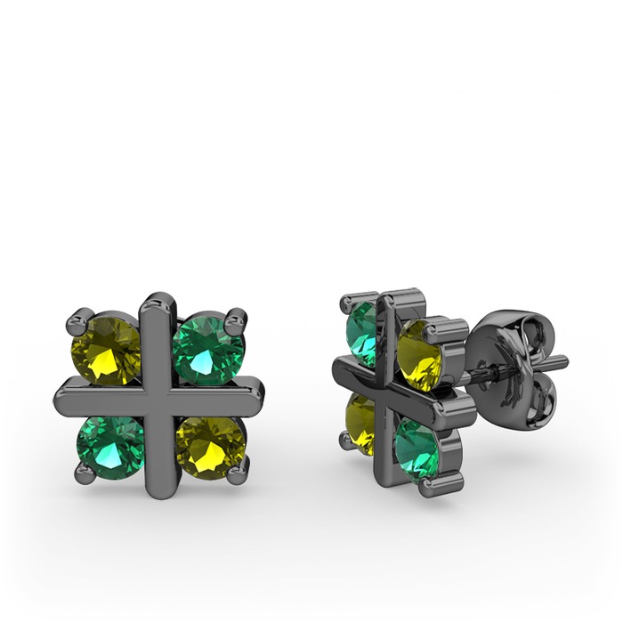 Peridot ve yeşil kuvars 925 ayar siyah rodyum kaplama gümüş küpe