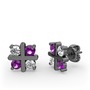 Pırlanta ve ametist 925 ayar siyah rodyum kaplama gümüş küpe (0.96 karat)