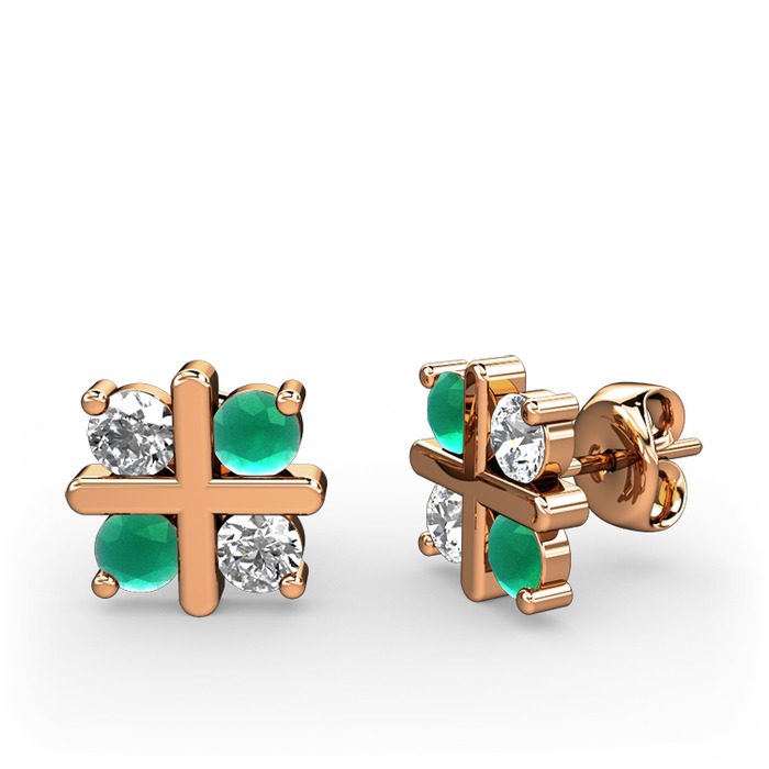 Pırlanta ve kök zümrüt 18 ayar rose altın küpe (0.96 karat)