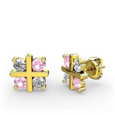 Pırlanta ve pembe kuvars 925 ayar altın kaplama gümüş küpe (0.96 karat)