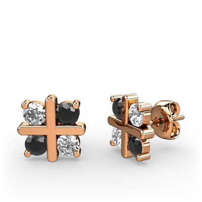 Pırlanta ve siyah zirkon 18 ayar rose altın küpe (0.96 karat)
