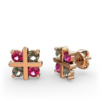 Rodolit garnet ve dumanlı kuvars 14 ayar rose altın küpe