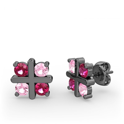 Rodolit garnet ve pembe kuvars 925 ayar siyah rodyum kaplama gümüş küpe