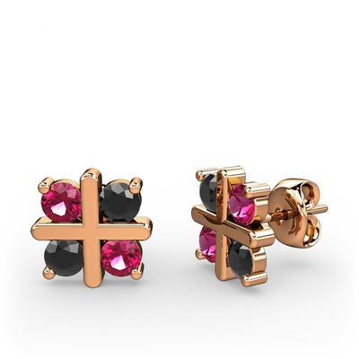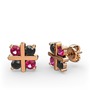 Rodolit garnet ve siyah zirkon 18 ayar rose altın küpe