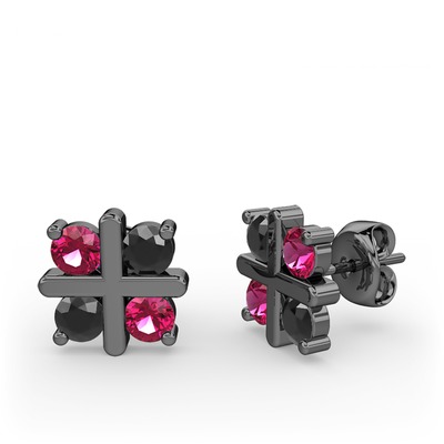 Rodolit garnet ve siyah zirkon 925 ayar siyah rodyum kaplama gümüş küpe