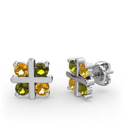 Sitrin ve peridot 8 ayar beyaz altın küpe