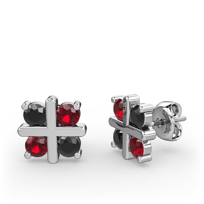 Siyah zirkon ve garnet 8 ayar beyaz altın küpe