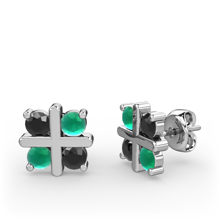 Siyah zirkon ve kök zümrüt 8 ayar beyaz altın küpe