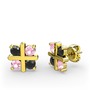 Siyah zirkon ve pembe kuvars 925 ayar altın kaplama gümüş küpe