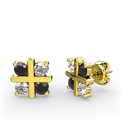 Siyah zirkon ve pırlanta 925 ayar altın kaplama gümüş küpe (0.96 karat)
