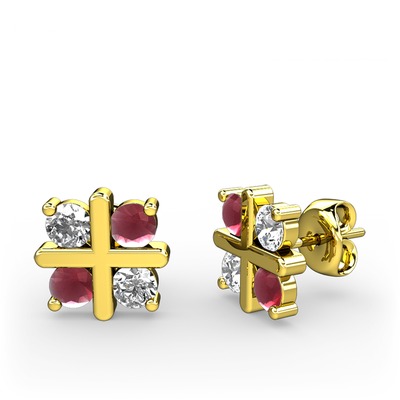 Swarovski ve kök yakut 925 ayar altın kaplama gümüş küpe