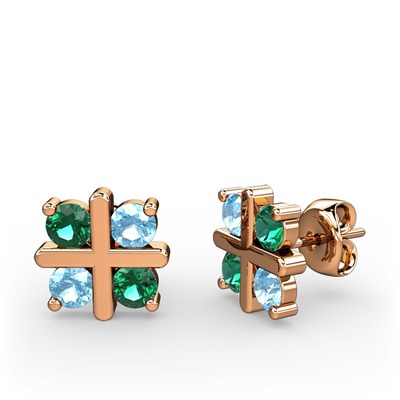 Yeşil kuvars ve akuamarin 925 ayar rose altın kaplama gümüş küpe