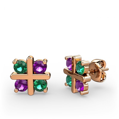 Yeşil kuvars ve ametist 925 ayar rose altın kaplama gümüş küpe