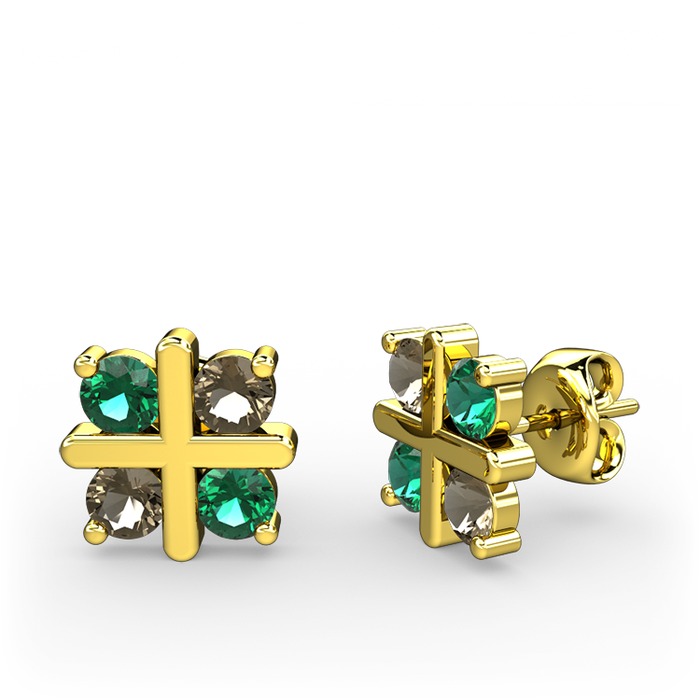 Yeşil kuvars ve dumanlı kuvars 18 ayar altın küpe