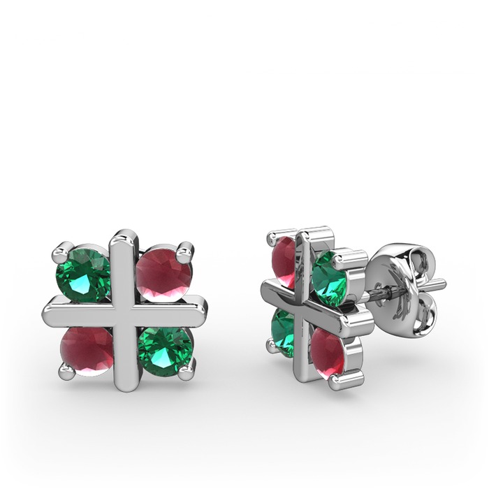 Yeşil kuvars ve kök yakut 925 ayar gümüş küpe